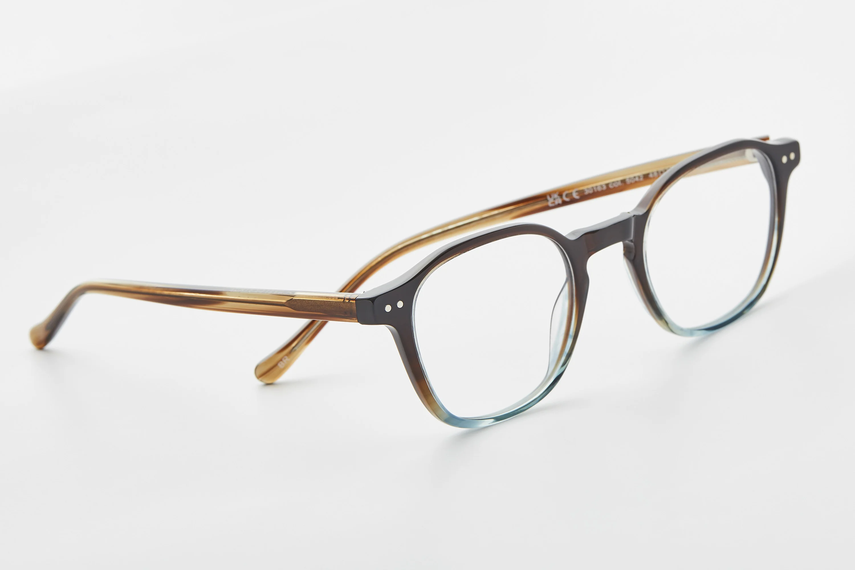 Vintage crystal colours, retro tort contrast temples and pin detailing